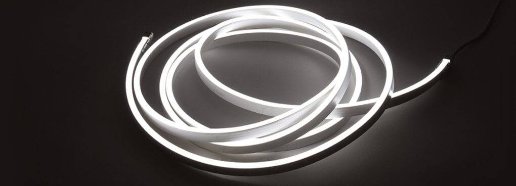 LED Neon flex se compone de un perfil de silicona en forma de U muy flexible con una tira de LED en el costado. El perfil está lleno de macetas opacas. Neon Flex se puede cortar cada 10 cm, y la energía se suministra a través de los puntos de soldadura que se pueden encontrar en la tira de LED en el interior.
